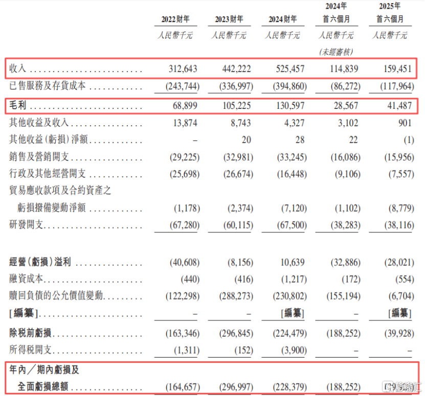 2022年、2023年、2024年及2025年1-6月(报告期),公司的收入分别为3.13亿元、4.42亿元、5.25亿元、1.59亿元。