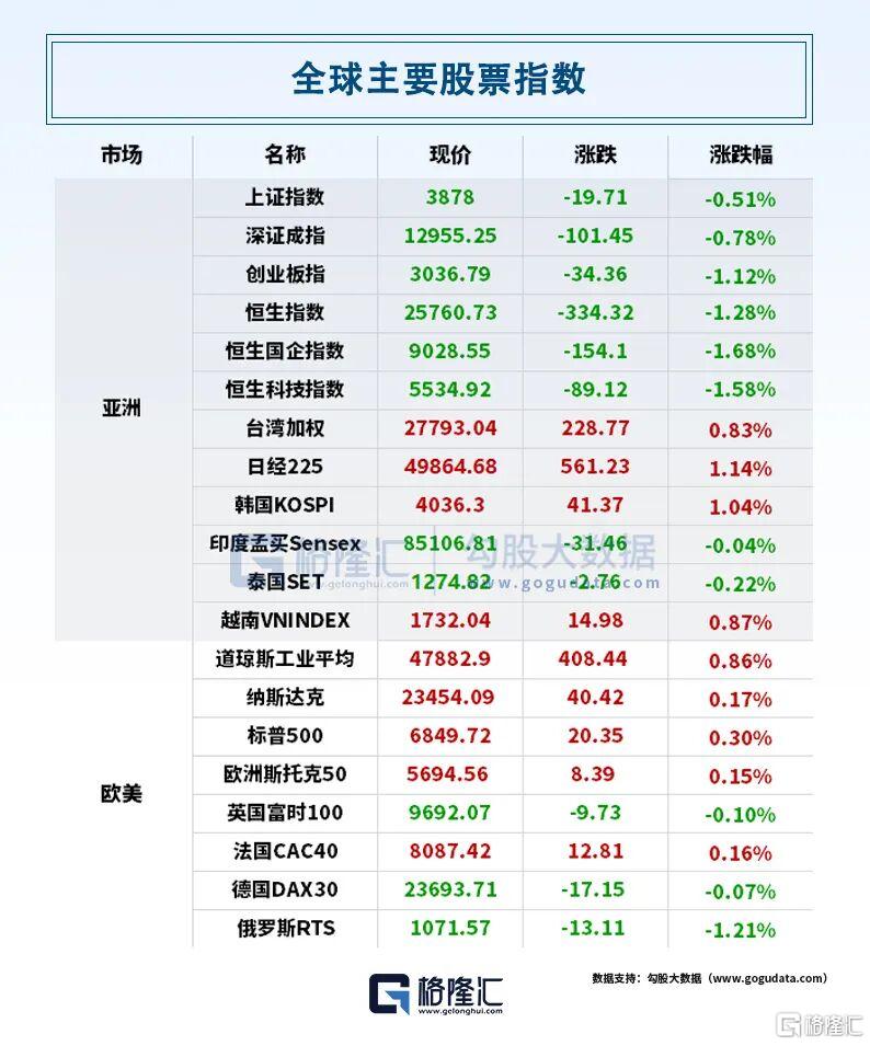 全球资产表现上,贵金属价格方面,现货白银收涨0.07%,报58.489美元/盎司。现货黄金收跌0.07%,报4203.06美元/盎司。COMEX黄金期货涨0.44%,报4239.30美元/盎司。COMEX白银期货涨0.49%,报58.990美元/盎司。LME伦铜向上触及11540美元/吨,再创历史新高,收盘11488美元/吨,日内上涨3.08%。国际油价上涨,WTI原油期货收涨0.77%,报58.932美元/桶。布伦特原油期货收涨0.57%,报62.628美元/桶。