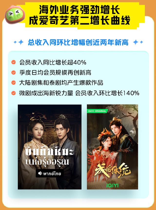 一条战线是传统内容阵地的巩固。从网台双爆的《生万物》,到票房突破12亿的院线电影《捕风追影》,再到云合市占率领跑的《喜剧之王单口季》,爱奇艺依旧爆款频出。而且,华语内容的优势还在继续转化成爱奇艺海外业务的动力,海外总收入同环比增幅已经创下近两年新高。