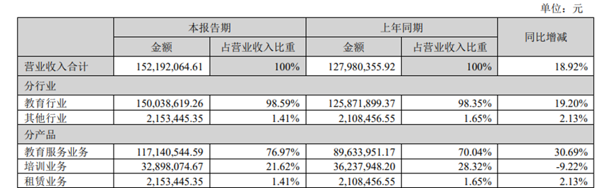 具体而言,凯文教育K12学校运营业务为两所北京凯文K12学校的运营服务以及凯文教育品牌的轻资产扩张;产教融合业务为公司在职业教育方向的布局,主要为轻资产的校企合作项目;培训服务业务为非学科类培训以及北京市西山滑雪场的运营。