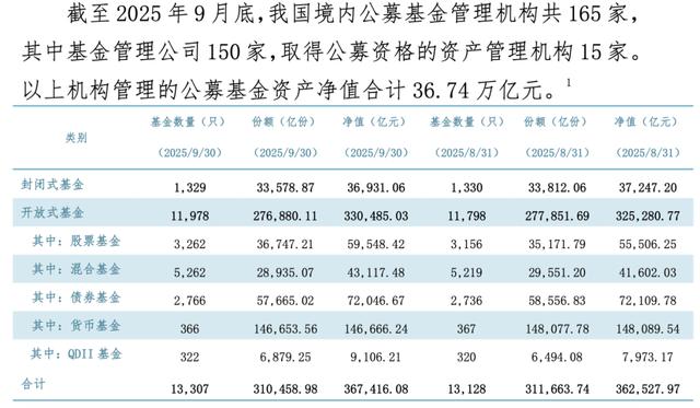 根据基金业协会数据,截至今年9月底,公募基金规模约36.74万亿元,较年初增加了3.9万亿元,再度刷新历史新高。