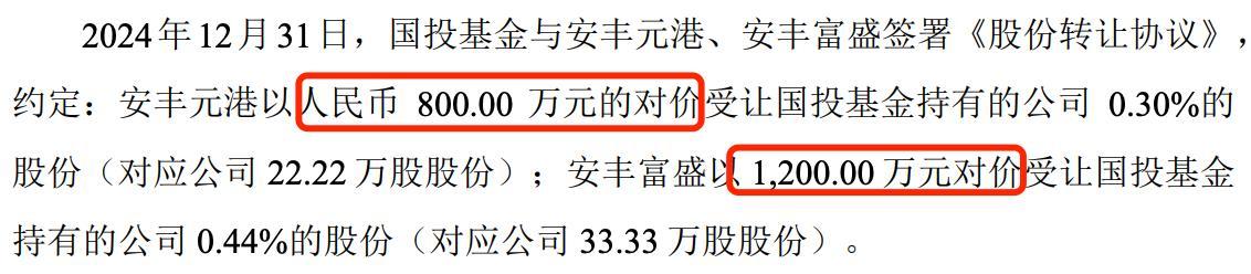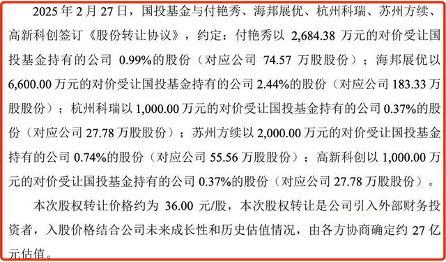 值得一提的是,国投基金曾参与对易思维的投资。而在2024年12月至2025年2月,国投基金则将所持股权分别转让给了安丰元港、安丰富盛、付艳秀、海邦展优、杭州科瑞、苏州方续、高新科创等,作价合计1.53亿元,每股成本为36元。