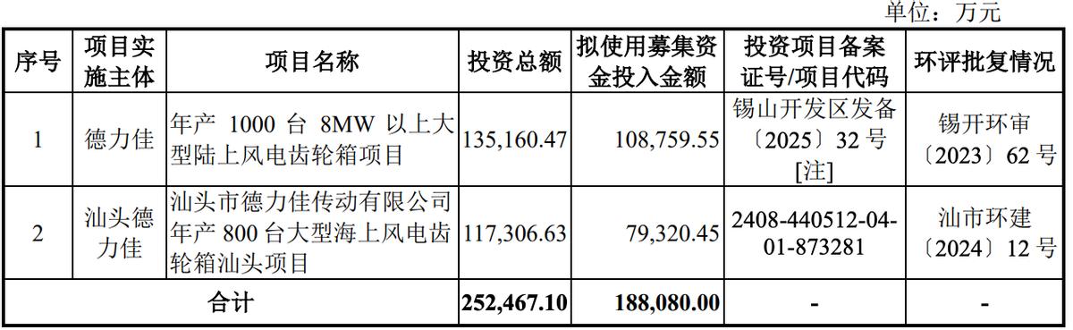 据贝多商业&贝多财经了解,德力佳于2024年12月递交招股书,原计划募资18.81亿元。其中,10.88亿元将用于年产1000台8MW以上大型陆上风电齿轮箱项目,7.93亿元将用于汕头市德力佳传动有限公司年产800台大型海上风电齿轮箱汕头项目。