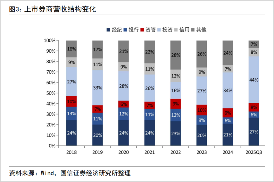 在行业佣金率下滑的同时,经纪业务收入也呈现出明显的集中趋势。据中国银河测算,2021年行业CR10的市场份额合计在40%左右,到了2025年第三季度提升到了约6成。