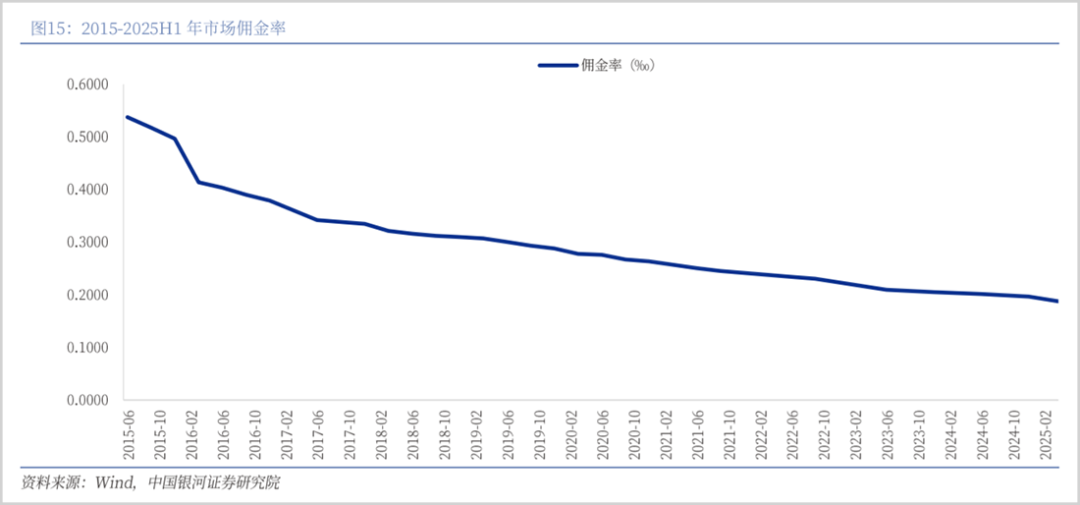 近些年来,由于价格战因素行业佣金率持续走低,由2015年的万5以上持续下降到上半年的万1.82,这使得行业的利润空间不断压缩。