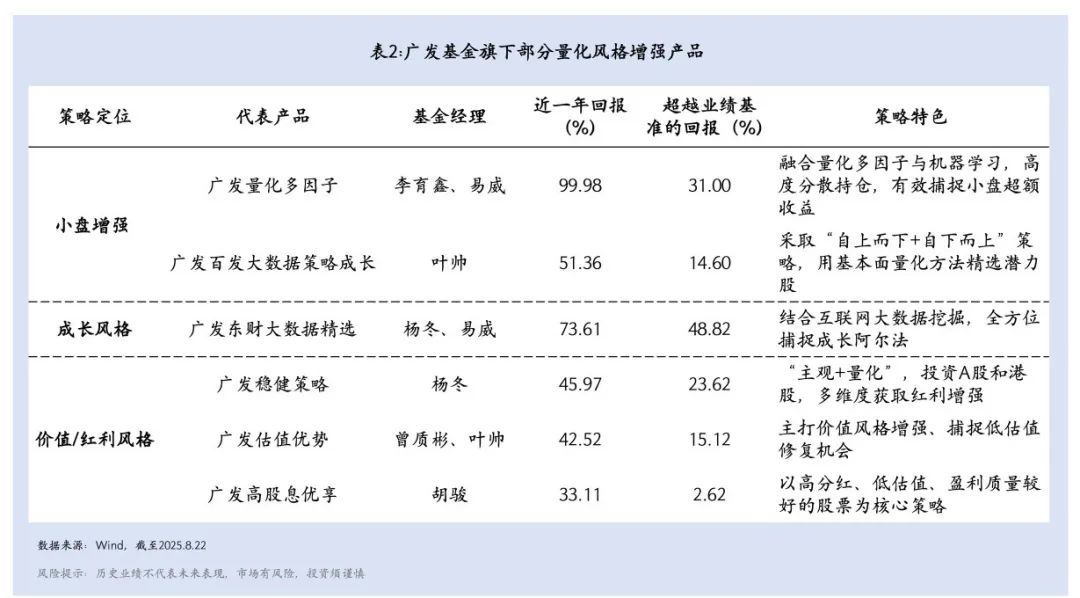 小微盘是量化基金的天然主战场。广发基金的风格增强产品系列中,排在第一的是小盘增强。