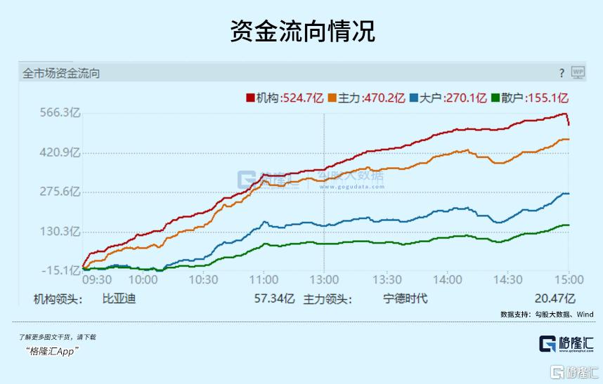 今天A股市一改昨日略显担忧的情绪,市场资金积极回补加仓,Wind数据显示,今天机构和主力资金共净流入接近千亿元,并且主要流入方向不是银行、能源等红利资产(银行股继续微跌),而是大规模流入了AI、机器人、芯片半导体等原本已经显得拥挤的热门赛道。