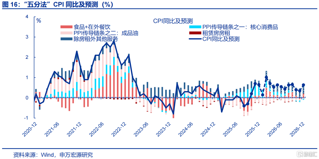 展望后续:大宗商品价格有进一步上行的可能,但反内卷对中下游价格的影响或偏慢,预计通胀回升幅度相对温和。煤、铜等大宗商品在供给收缩的影响下,对PPI贡献或仍在持续但反内卷对中下游价格的影响需要一定时间,预计2026年PPI逐季修复、但可能慢于市场预期。CPI方面,反内卷推动PPI与猪价回升,有望对CPI修复形成支撑,但黄金价格涨幅放缓、国补退坡等问题或约束CPI反弹幅度,CPI同比或温和回升。