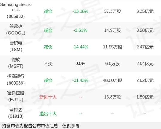 此外张坤还于Q4减持了腾讯,京 东健康、分众传媒、招商银行、三星集团、台积电等公司;此外,张坤对阿里则进行了小幅增持,新进仅一家公司——富途控股(对应普拉达退出十大)。