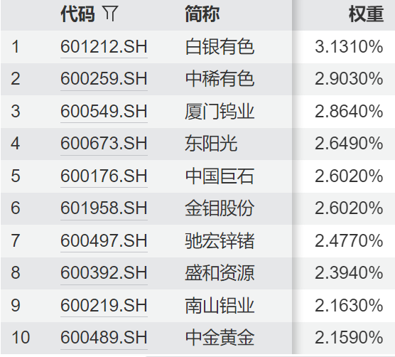 以上为本基金跟踪的上证大宗商品股票指数的前十大成分股,仅供展示,不做个股推荐。)