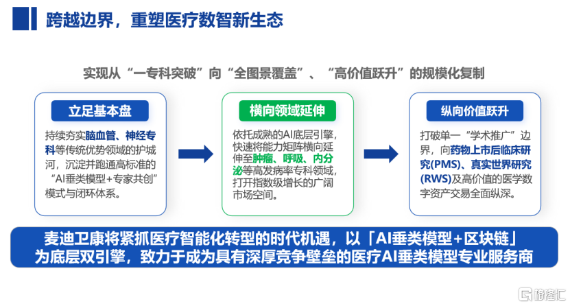 麦迪卫康拥有覆盖全国超3000家三级医院的服务网络,参与众多三甲医院及卒中中心、胸痛中心等国家级专科体系建设工作。当元宇鼎诚的技术底座接入这张网络,形成的将是“医院合作网络+专科AI模型+合规数据确权”的三位一体壁垒。配合已获数据服务商资质和区块链确权能力,“技术壁垒→数据沉淀→资产增值”的正向闭环已然成型。