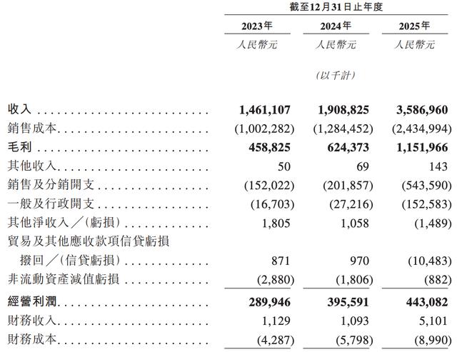 相较于此前招股书,TOP TOY补充了截至2025年12月末的财务数据。2023年、2024年和2025年度,该公司的营收分别约为14.61亿元、19.09亿元和35.87亿元,净利润分别约为2.12亿元、2.94亿元和1.01亿元。
