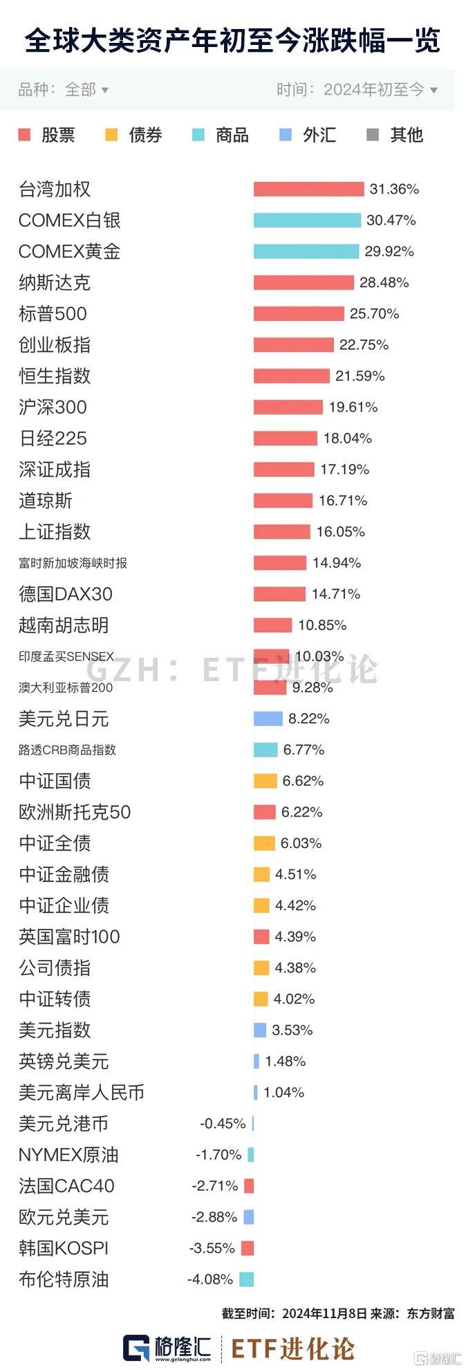 在全球央行购金潮推动下,今年以来金价接连创出新高。截至目前,黄金位列今年全球主要大类资产涨幅榜单第三。
