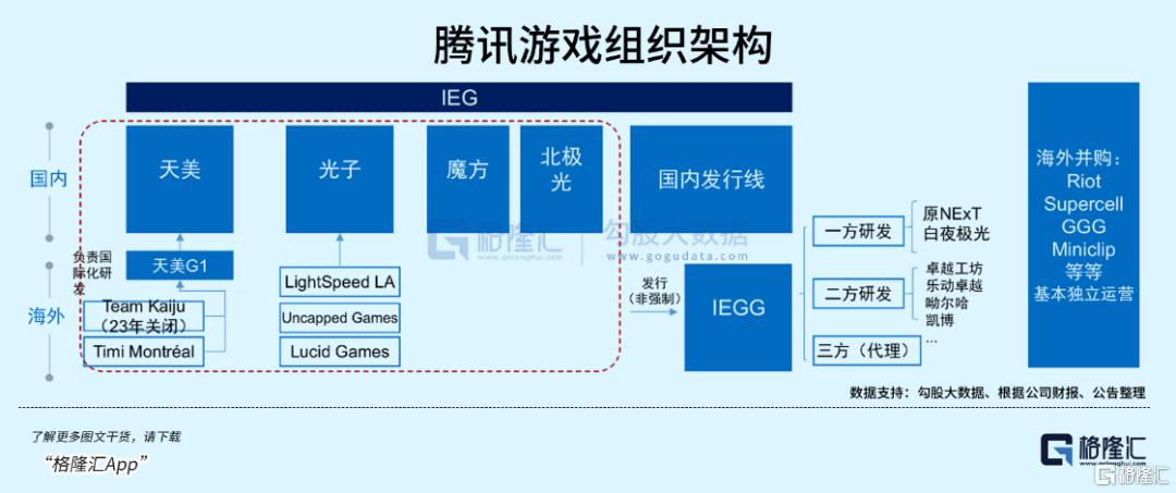 国内市场中,《王者荣耀》《和平精英》等旗舰产品长盛不衰,形成稳定的收入基本盘;海外市场通过收购Riot Games、Super cell等优质资产,以及天美、光子工作室独立出海发行,实现22%的高速增长,《VALORANT》等产品成为海外爆款。