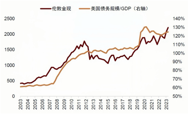 图3:美国债务杠杆规模与黄金价格走势