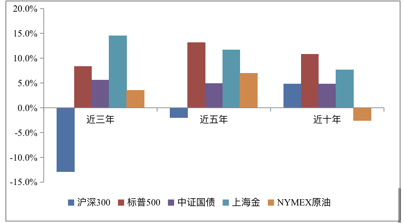 图6:黄金与其他资产近年来年化收益率表现