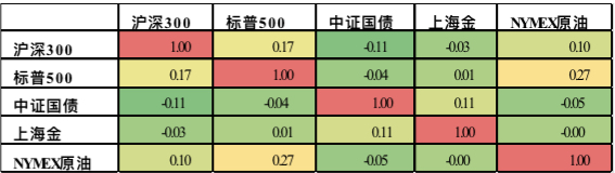 表一:黄金与其他资产近十年收益率相关性