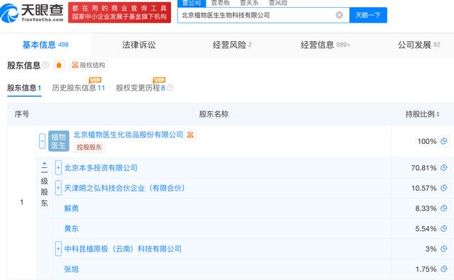事实上,北植科技指的是北京植物医生生物科技有限公司。天眼查App信息显示,北植科技成立于1994年12月,由植物医生全资控制。早前,植物医生曾以北植科技为主体寻求上市,彼时的名称为“北京明弘科贸有限责任公司”。