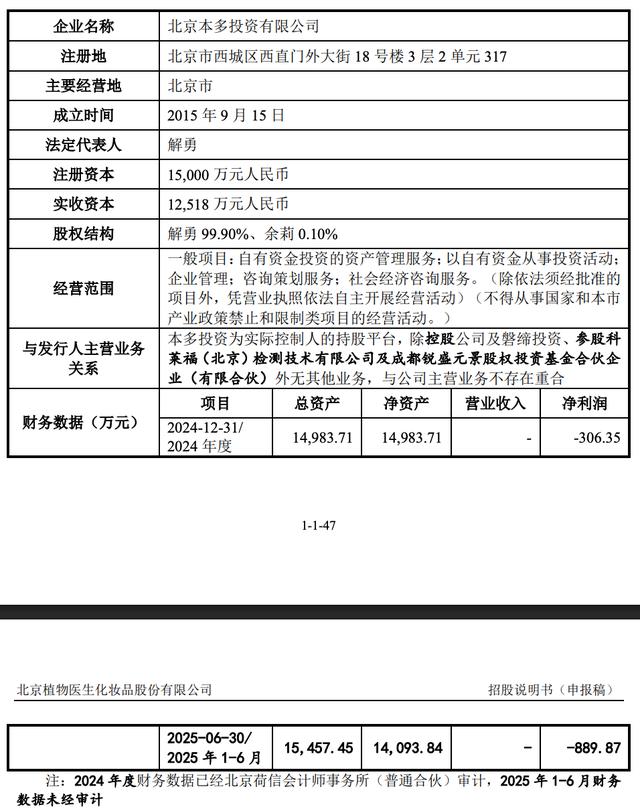 2024年度,本多投资的净亏损约为306.35万元,2025年上半年的净亏损约为889.87万元。