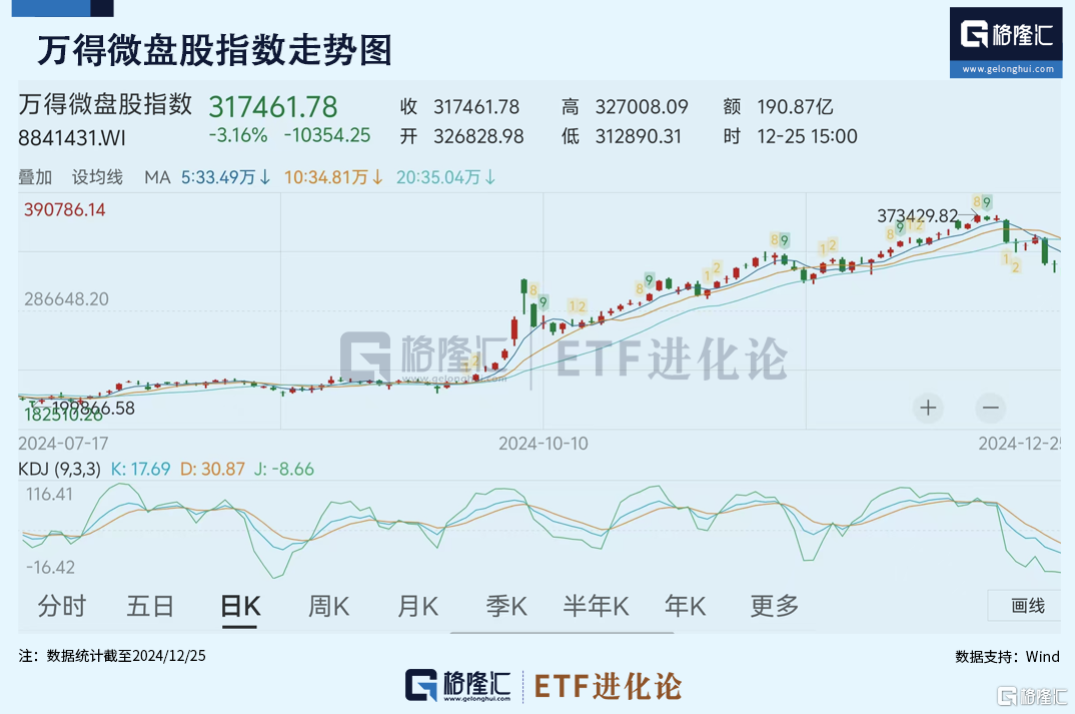 今日万得微盘股指数下跌3.16%,从12月17日累计下跌14%。微盘股承压,大市值风格相对占优。