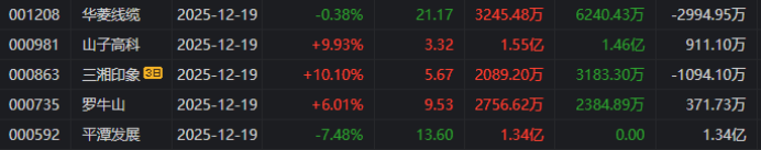 龙虎榜单日净买入额前三为平潭发展、山子高科、创源股份,分别为2.63亿、2.08亿、1.98亿。