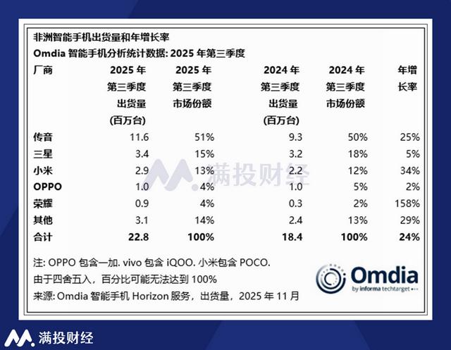 外部竞争:“围剿”之下的市场份额流失。非洲这个传音的“基本盘”,正被小米、OPPO、荣耀等国内厂商逐步渗透,竞争格局从“一家独大”转向“群雄逐鹿”。