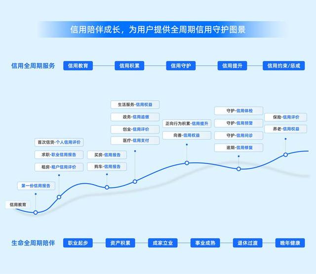 二是“服务闭环”,信用服务将贯穿人生全周期,从18岁后生成首份信用报告,持续覆盖求职、租房、购车购房、消费、信贷、保险、医疗等关键生活场景,信用服务嵌入个人发展轨迹,让“信用陪伴成长”。