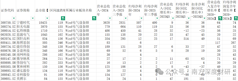还有15家是属于电气设备行业,从公司名单来看,大多涉及储能、新能源电池业务。