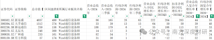 最后,就是来自通信设备行业的6家企业,这些公司多从事光模块、光器件以及物联网无线通信业务。
