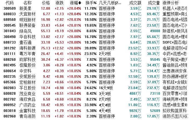 焦点股方面,并购锂电企业的国晟科技走出14天9板,金富科技、广济药业4连板,茂业商业、新金路3连板,中天火箭4天2板,特一药业、美芝股份3天2板,万通发展、海王生物等2连板。