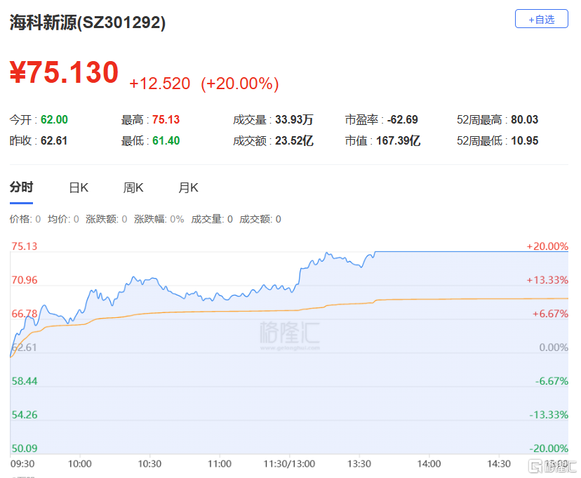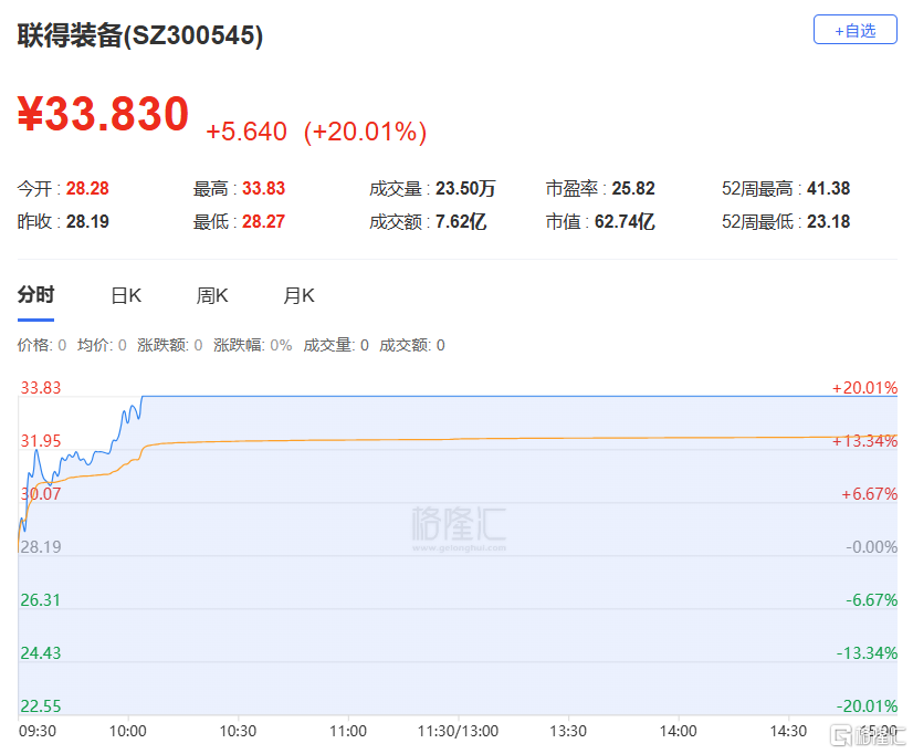 今日20cm涨停,换手率39.89%,成交额23.52亿。机构净买入1.33亿元,中山东路净买入8032万元,量化打板净买入6349万元,N周二净卖出3602万元。