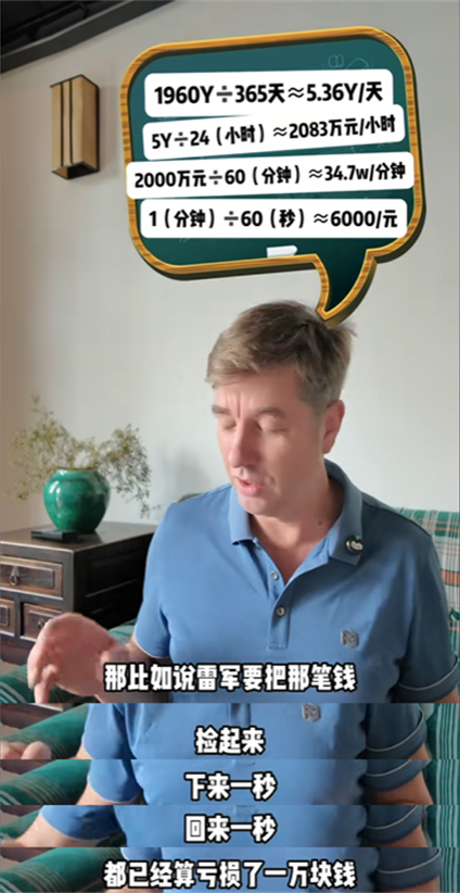 所以,如果地上掉了1万块钱,雷军要把那笔钱捡起来,“下来一秒,回来一秒,都已经算亏损了一万块钱。”