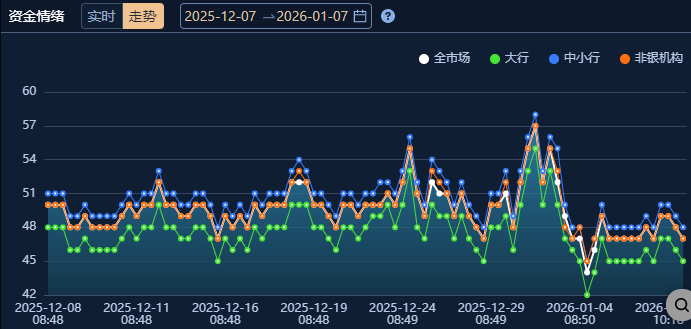 从CNEX资金情绪指数来看,近1个月来资金情绪除在年底有时点扰动外整体流动性充裕。