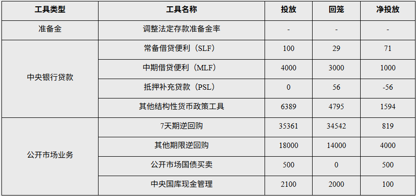 另外,1月5日中国央行公布12月各项工具流动性投放情况,中央银行贷款方面,常备借贷便利(SLF),净投放71亿元;中期借贷便利(MLF)净投放1000亿元,抵押补充贷款(PSL)净回笼56亿元;公开市场业务方面,7天期逆回购净投放819亿元,公开国债买卖净投放500亿元,为连续第三个月开展国债买卖操作;中央国库现金管理净投放100亿元。