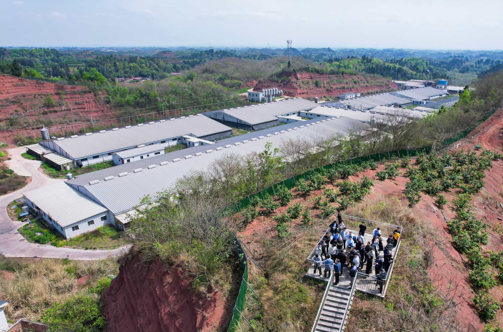 券商和投资者调研新希望种养结合模式猪场。图片来源:新希望六和