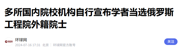 此前,曾有多所国内院校机构自行宣布学者当选俄罗斯工程院外籍院士。