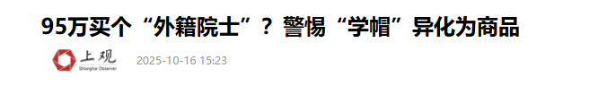 据《上观新闻》:“此前,不少留学中介在网上列出可协助申报外籍院士的机构包括:欧洲工程院、欧洲自然科学院、俄罗斯自然科学院、乌克兰国家工程院等,有不少真假难辨。”