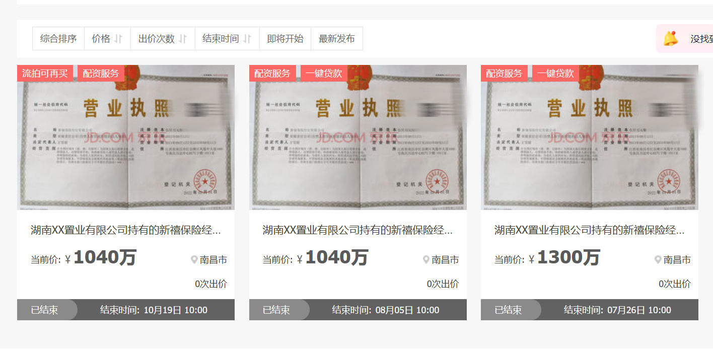 记者查询发现,保险中介机构相关股权也在市场化转让与司法处置环节亦频频遇冷。譬如,中国电信旗下甜橙保险代理股权曾多次挂牌转让,底价从7770万元一路下调,却始终无人接盘,最终启动注销程序;新禧保险经纪有限公司100%股权先在产权交易所挂牌转让,挂牌价格1300万元但仍无人问津,法拍后仍多次流拍,公司涉及经营债务、股权查封冻结及大量劳动纠纷等风险;北京共信赢保险经纪股权历经多轮司法拍卖流拍,最终因经营异常、资质失效被监管注销许可证。