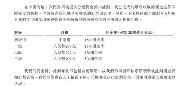 以深圳市场(同城货运服务)为例,非会员的“无等级”司机需要缴纳15%的订单金额作为佣金;月费为209元的一级司机会员,佣金率是11%;月费为499元的二级会员,佣金率是8%;月费为709元的三级会员,佣金率就只有5%……