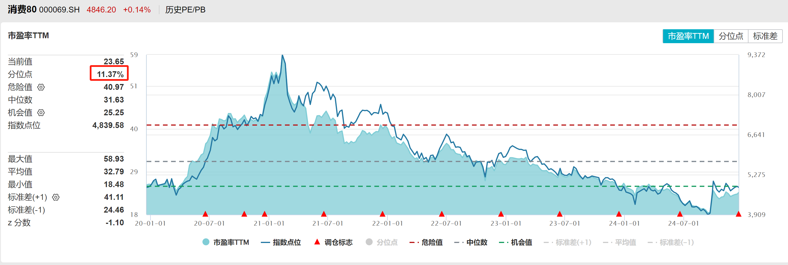 并且从消费的细分板块来看,近期大涨的零售、商场等题材,主要还是资金面涌入的“困境反转”,缺乏基本面支撑的背景下多数估值已呈现泡沫状态。而传统的白酒、家电、医药等消费龙头仍然是滞涨的,当前消费80指数的整体PE(TTM)仅为23.65倍,低于近50年88%以上的时间段。