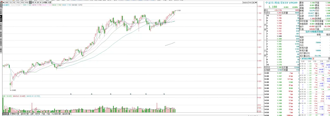中证红利质量ETF 159209,上市以后,上涨了21.1%。是A股类,红利ETF中涨幅最高的。