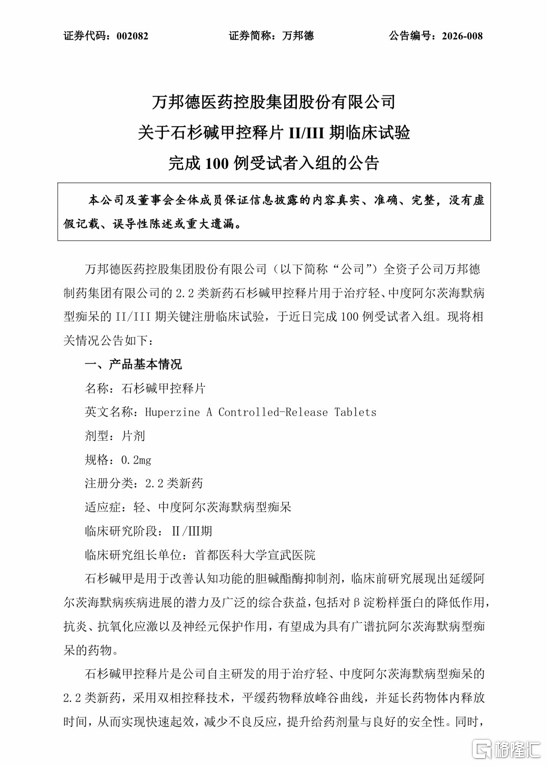 回到万邦德身上,其向创新药的转型正处于初期,‌石杉碱甲系列药品也均处于临床初期。