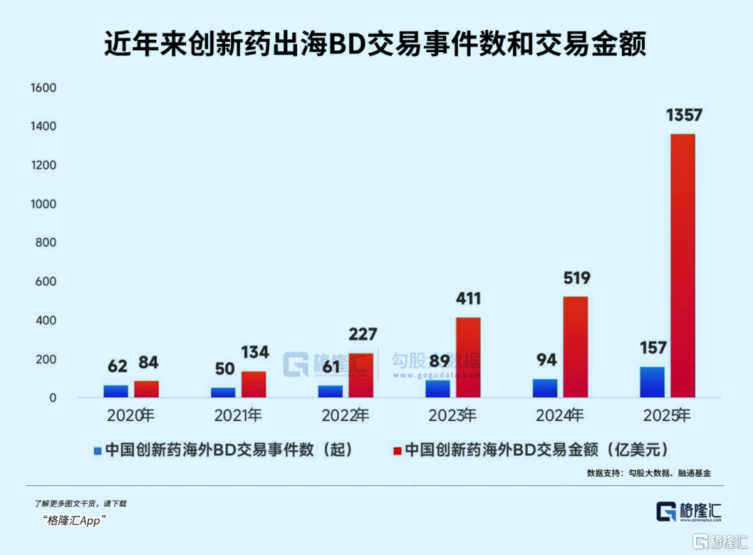 2025年全年对外授权交易总额达1356.55亿美元,同比增长250%,占全球交易总额的49%,超越美国成为全球创新药对外授权第一大市场。