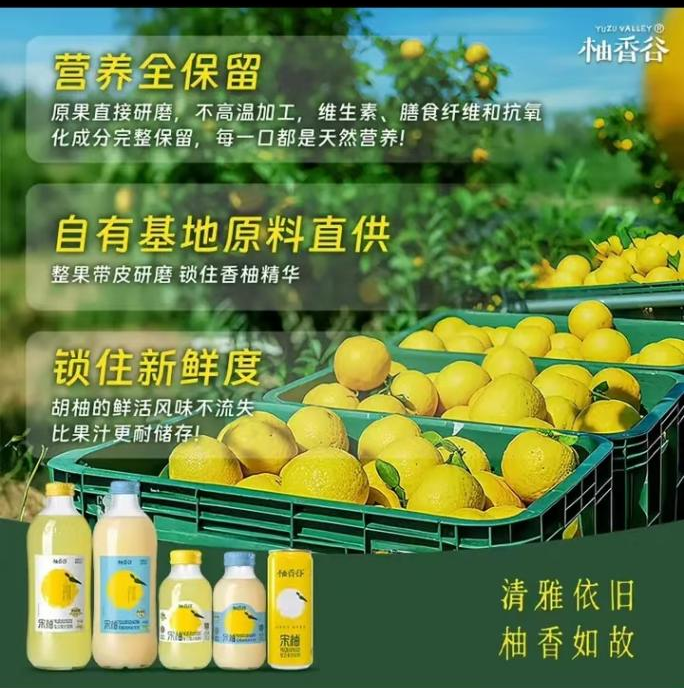 更为重要的是,与很多网红饮料找代工厂做贴牌不同的,柚香谷有着自营的工厂和香柚6万亩的种植基地。