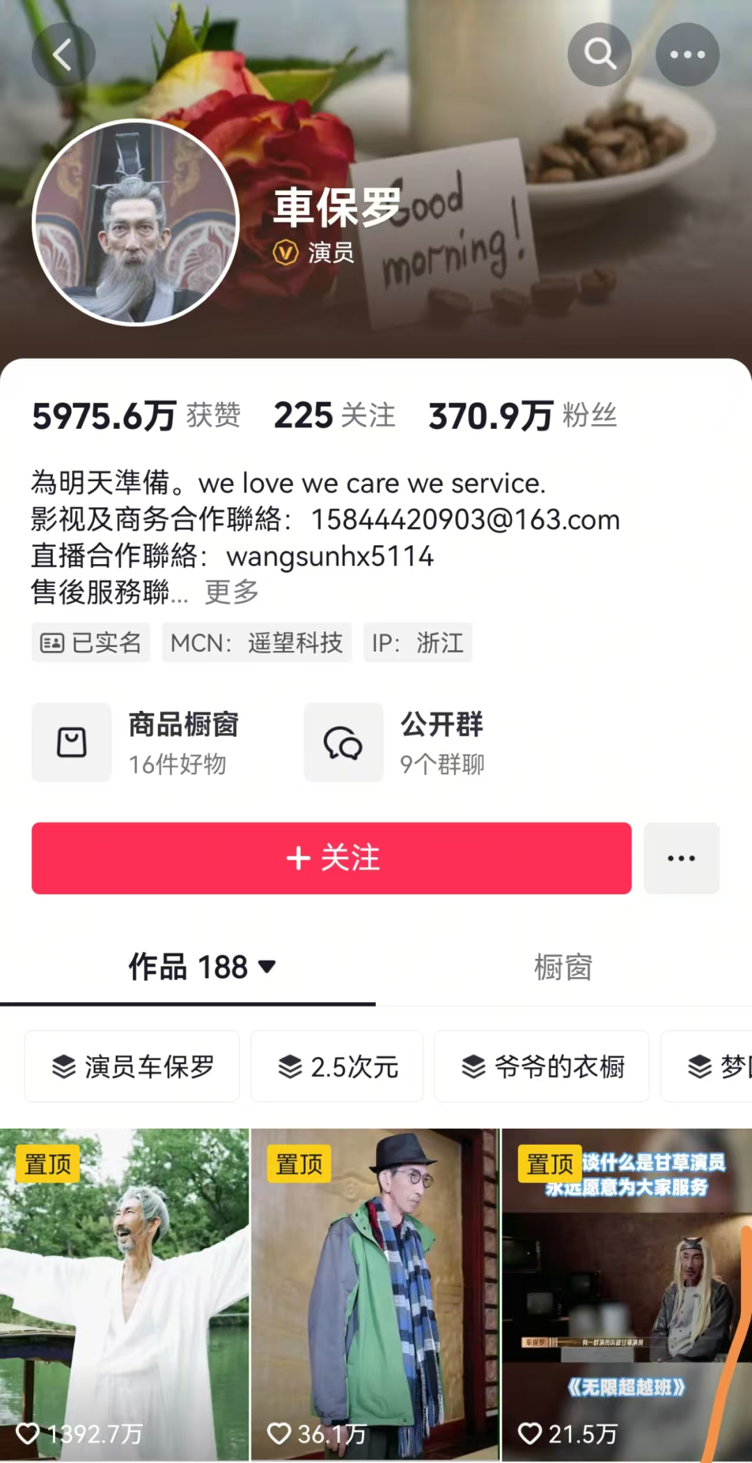现在,65岁的车保罗已经成为短视频平台网红。有数百万粉丝。