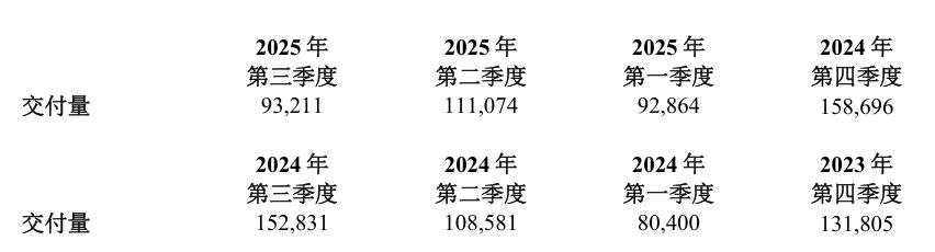 导致理想汽车收入下跌的一大原因,便是汽车销售遇阻。理想2025年三季度共计交付新车93211辆,同比骤减39.0%,直接使得该公司的汽车销售收入由2024年三季度的413.24亿元降至258.67亿元,降幅达到37.4%。