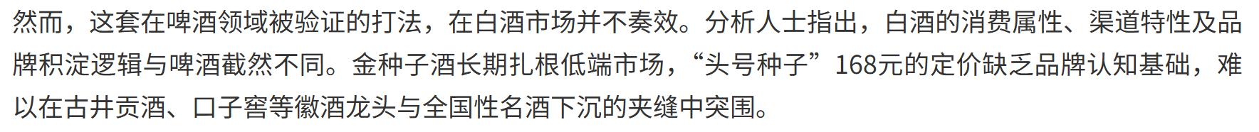 然而,这套在啤酒领域验证成功的模式,在白酒市场却遭遇了严重的水土不服。