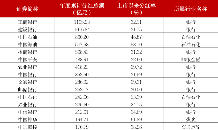 截至最新市场披露信息,中证红利指数成份股中已有66家上市公司陆续披露2025年分红方案,累计分红总额超7700万元。其中,15家公司分红超100亿元,从行业来看,银行占比60%,石油石化占比20%。