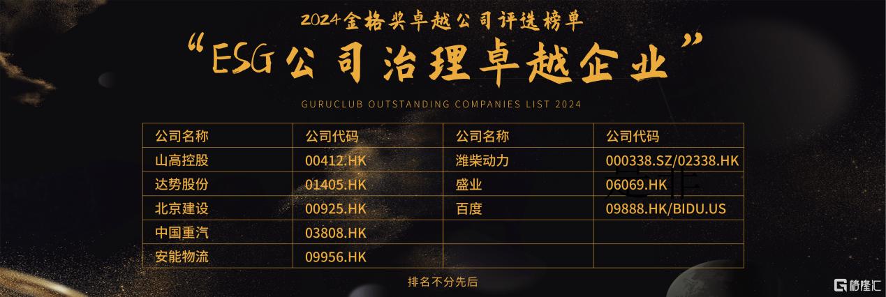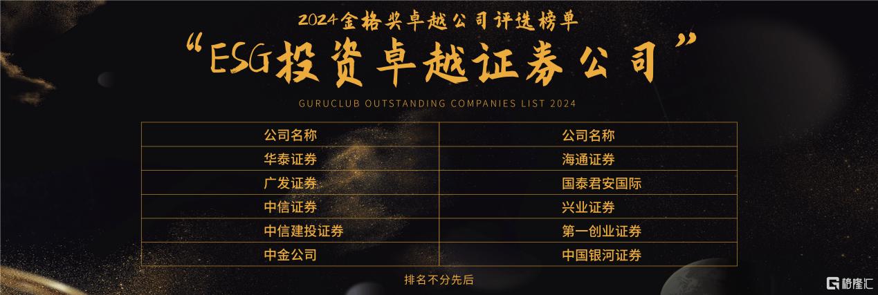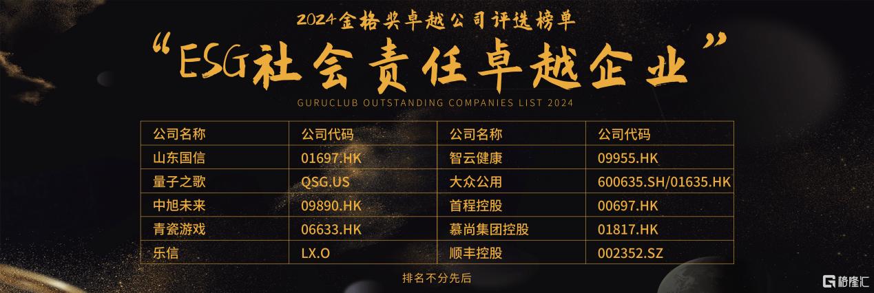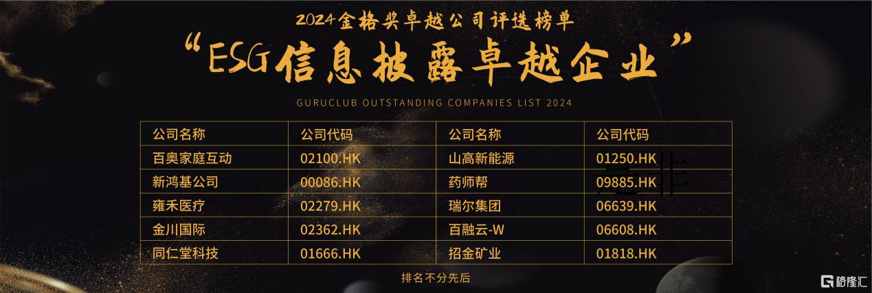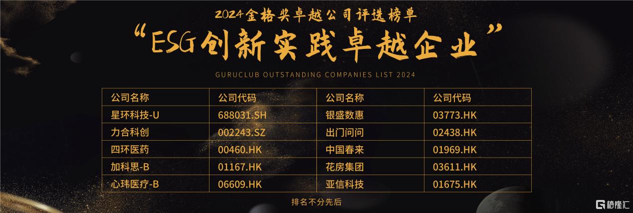 在本次活动中,2024格隆汇金格奖——ESG卓越企业及机构评选榜单也全部揭晓。