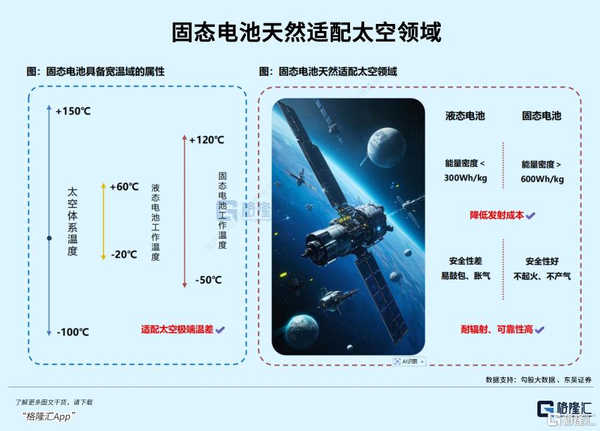 太空极端温差、强辐射的环境,液态电池根本无法适应,而固态电池凭借宽温域、高安全性和抗辐射特性,成为太空电源的理想选择,未来太空领域年需求有望达到几十甚至上百GWh